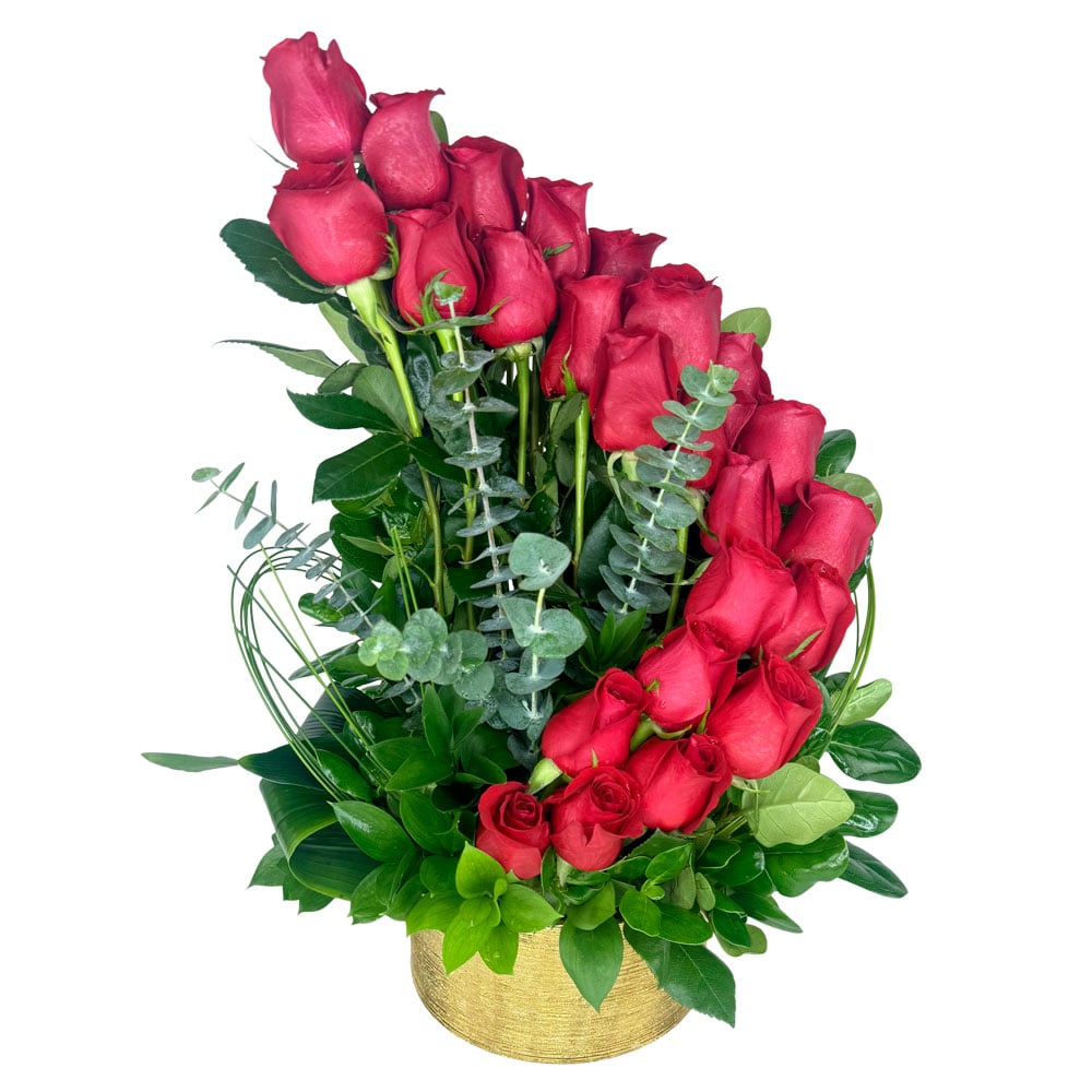 Mother’s Twist is a modern take on classic roses—designed to make a bold, elegant statement for Mom. This striking arrangement features a cascading presentation of premium roses paired with lush greenery and textured accents, all styled in a sleek gold container for a luxe finish. Timeless, dramatic, and unforgettable, it’s the perfect way to say “thank you for everything” with a unique twist.
