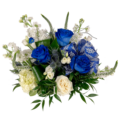Each arrangement is hand-crafted by a skilled designer and is unique. The one pictured is only an example. The designer making yours will use the most beautiful, freshest flowers available to achieve an arrangement like the one pictured in appearance, size, and value.